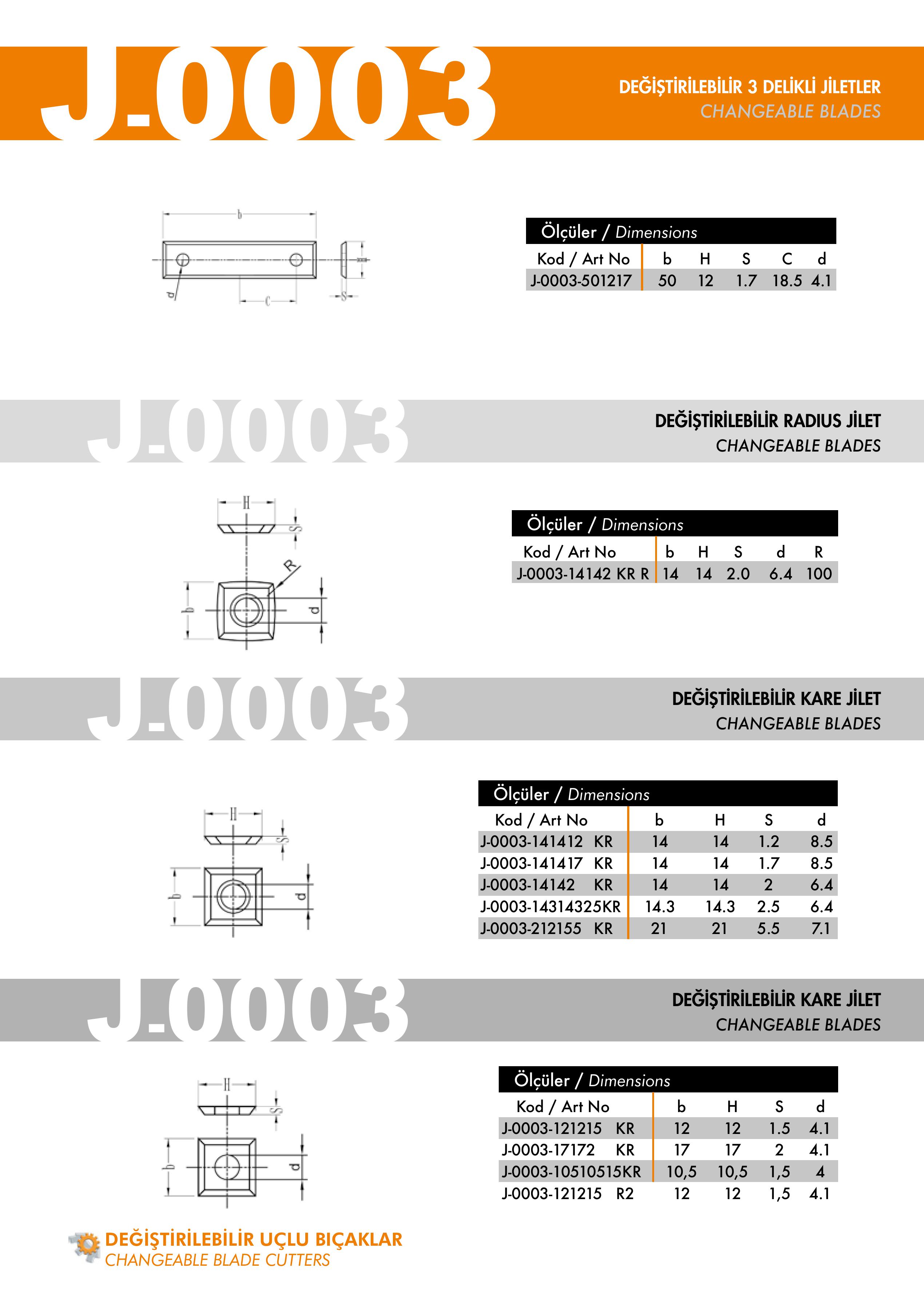 J-0004, J-0005, J-0006 Changeable Blades