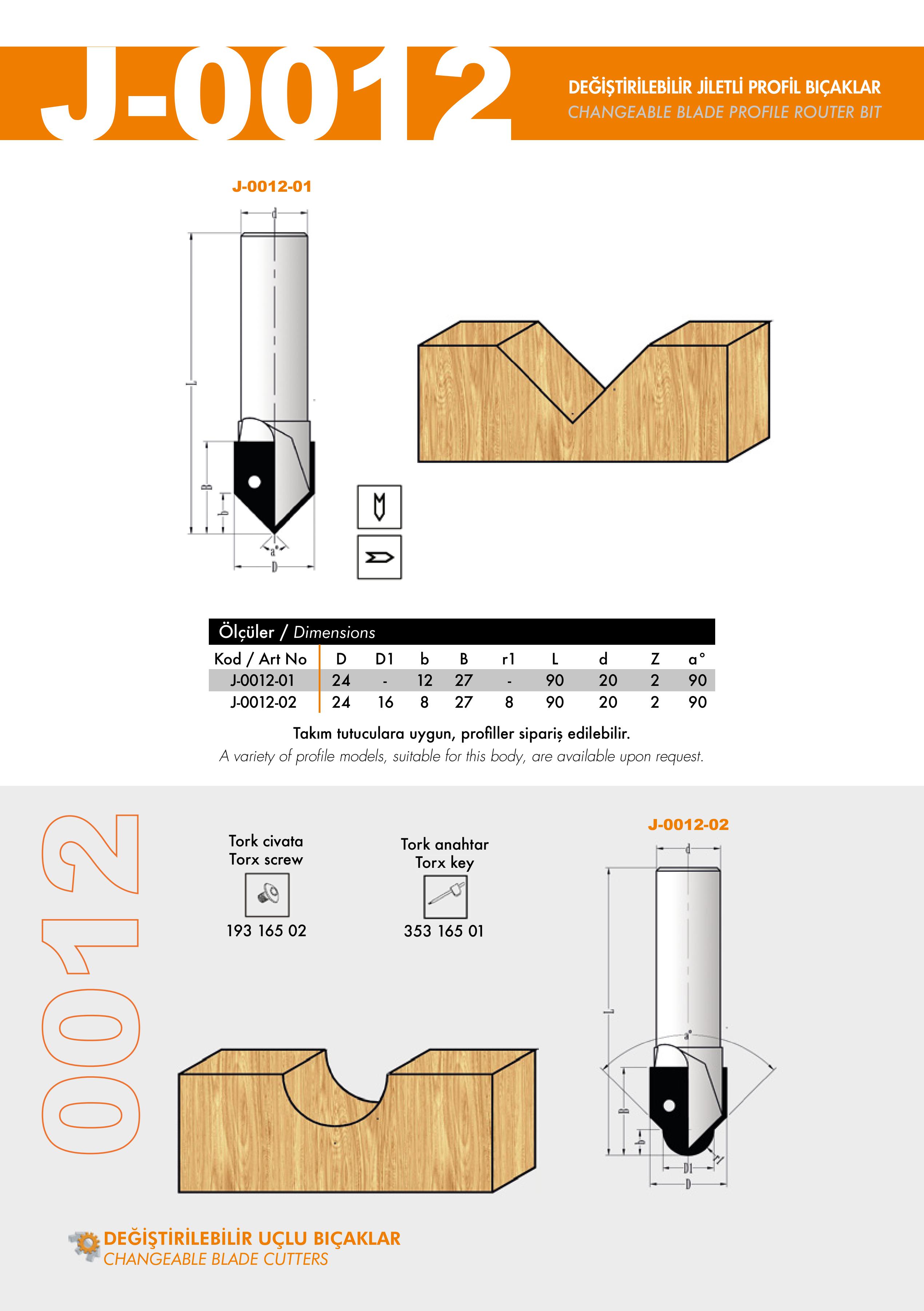 J-0073, J-0075, J-0080 Changeable Router Turnblade