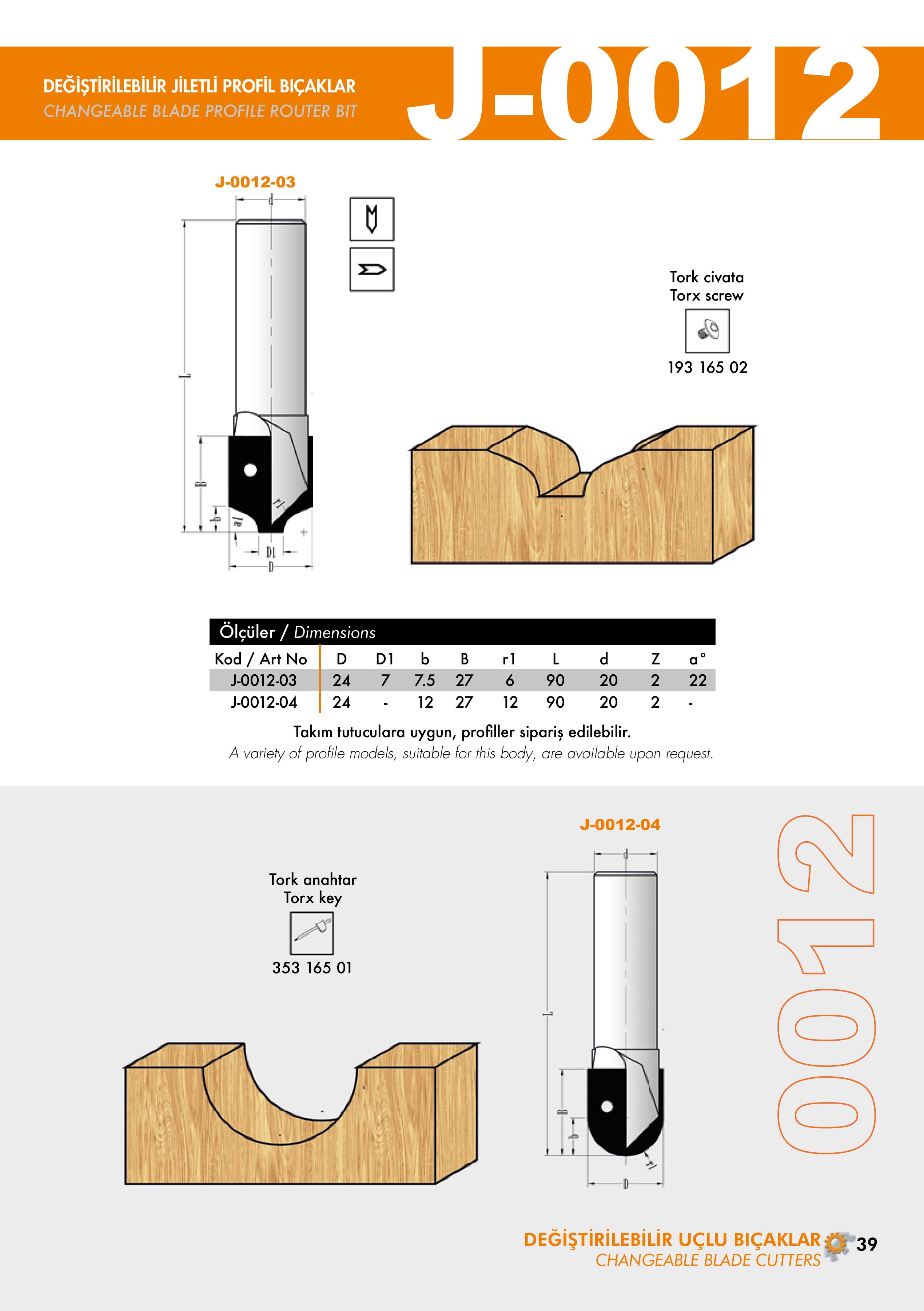 J-0040, J-0045 Changeable Router Turnblade