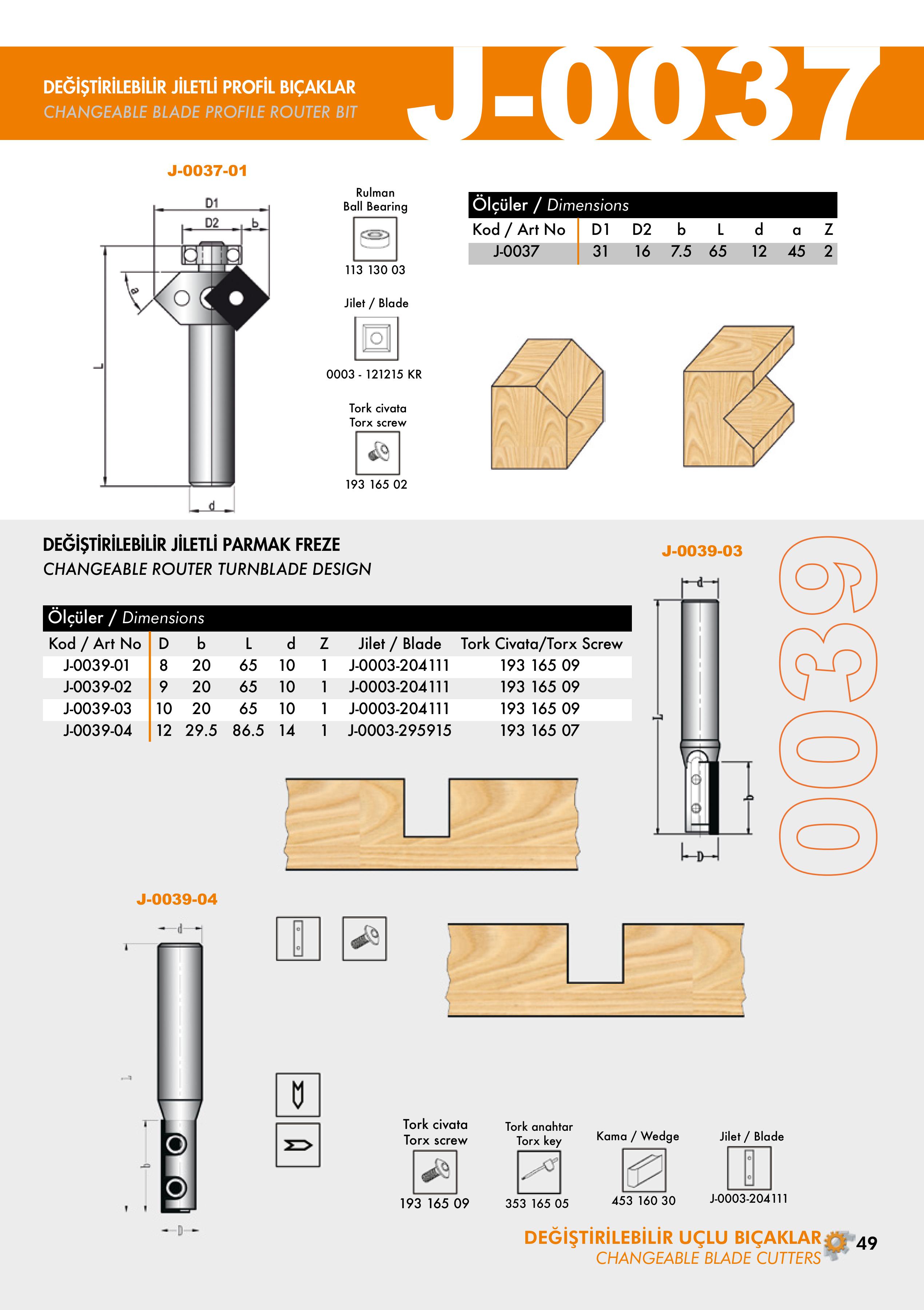 J-0040, J-0045 Changeable Router Turnblade