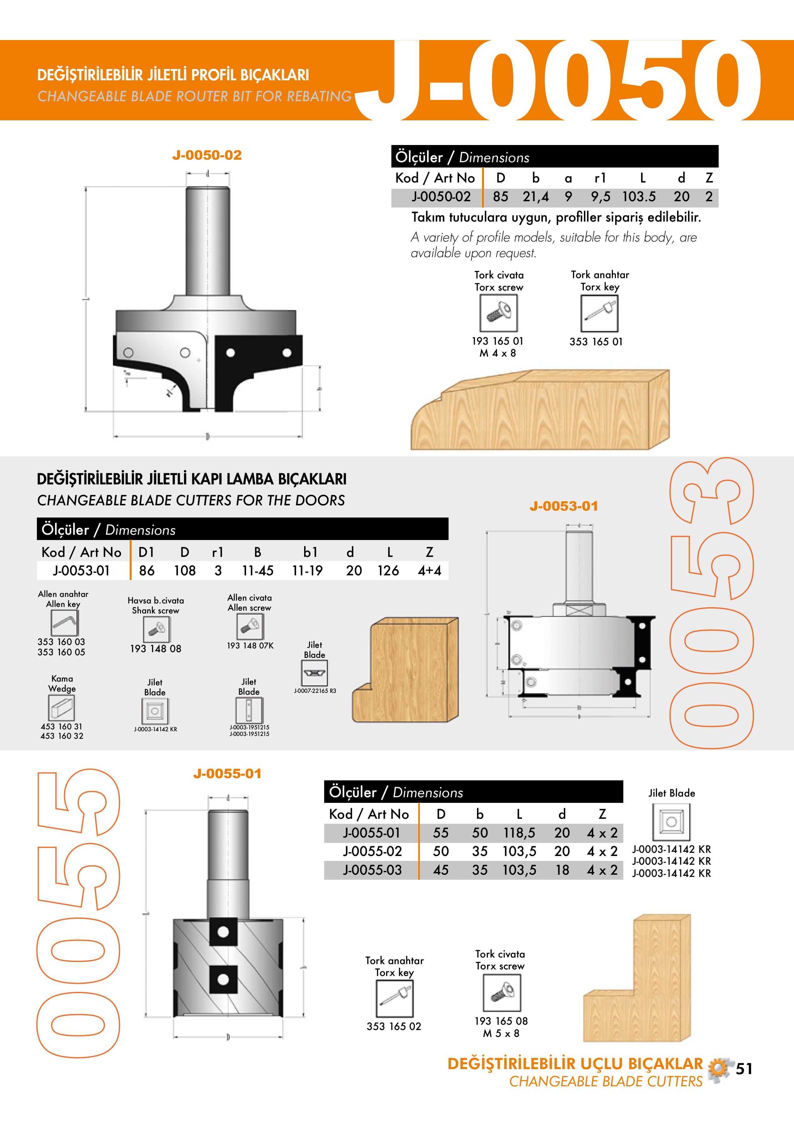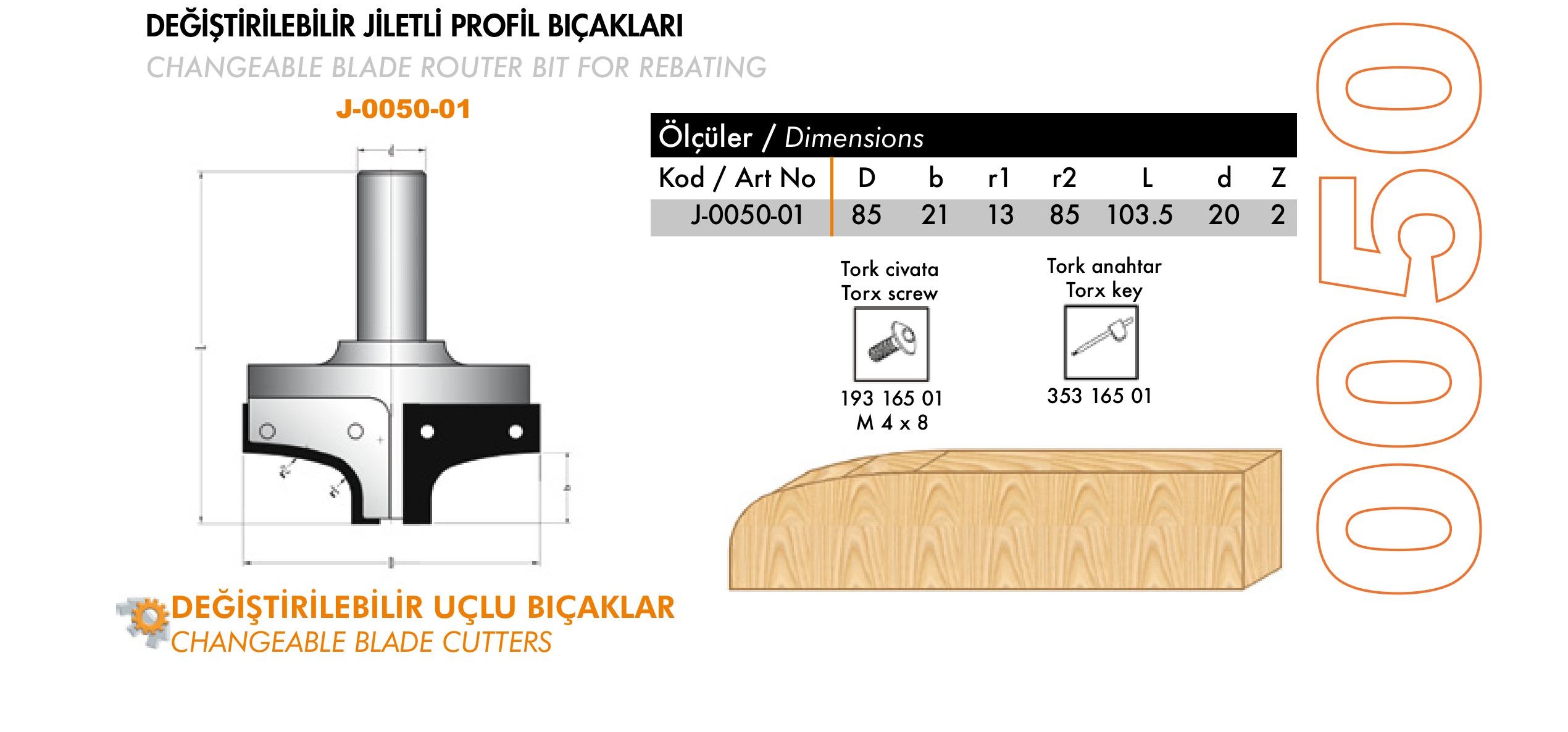 J-0040, J-0045 Changeable Router Turnblade