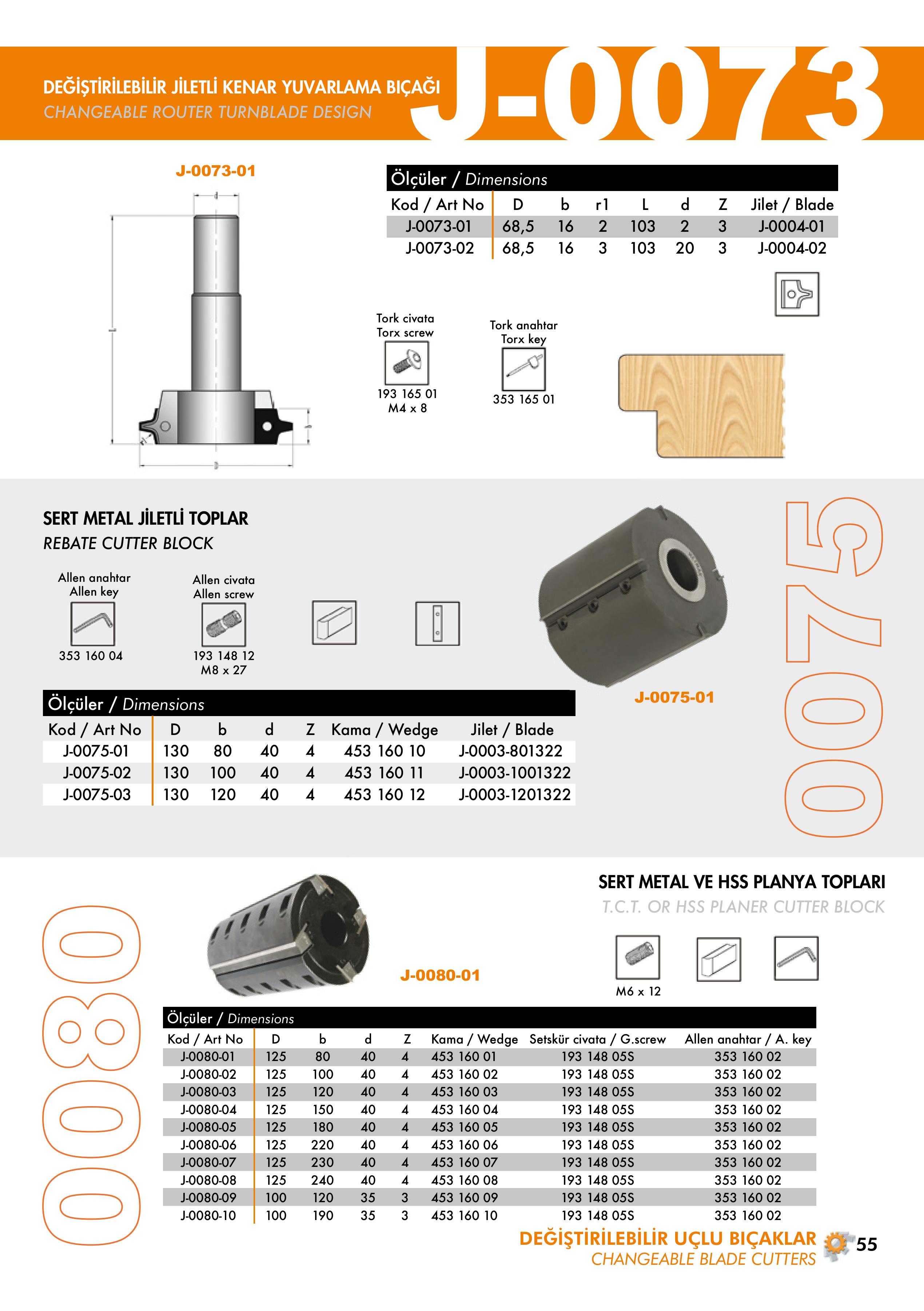 J-0073, J-0075, J-0080 Changeable Router Turnblade
