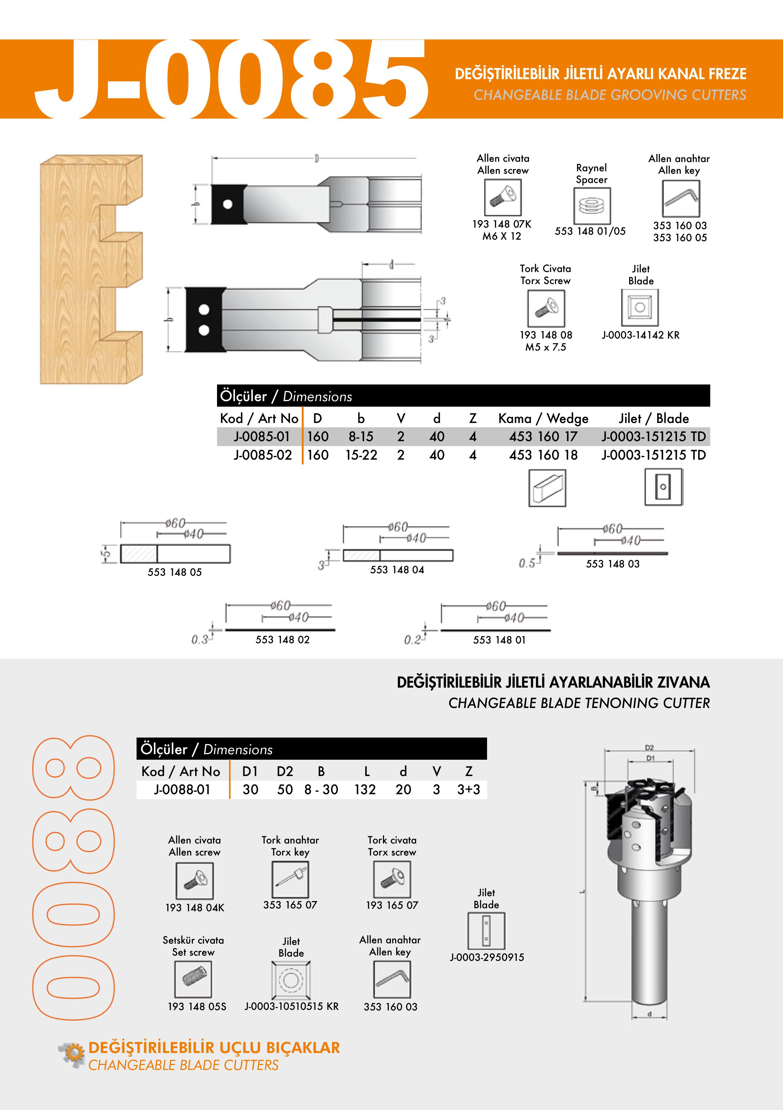 J-0085, J-0088 Changeable Blade Grooving Cutters