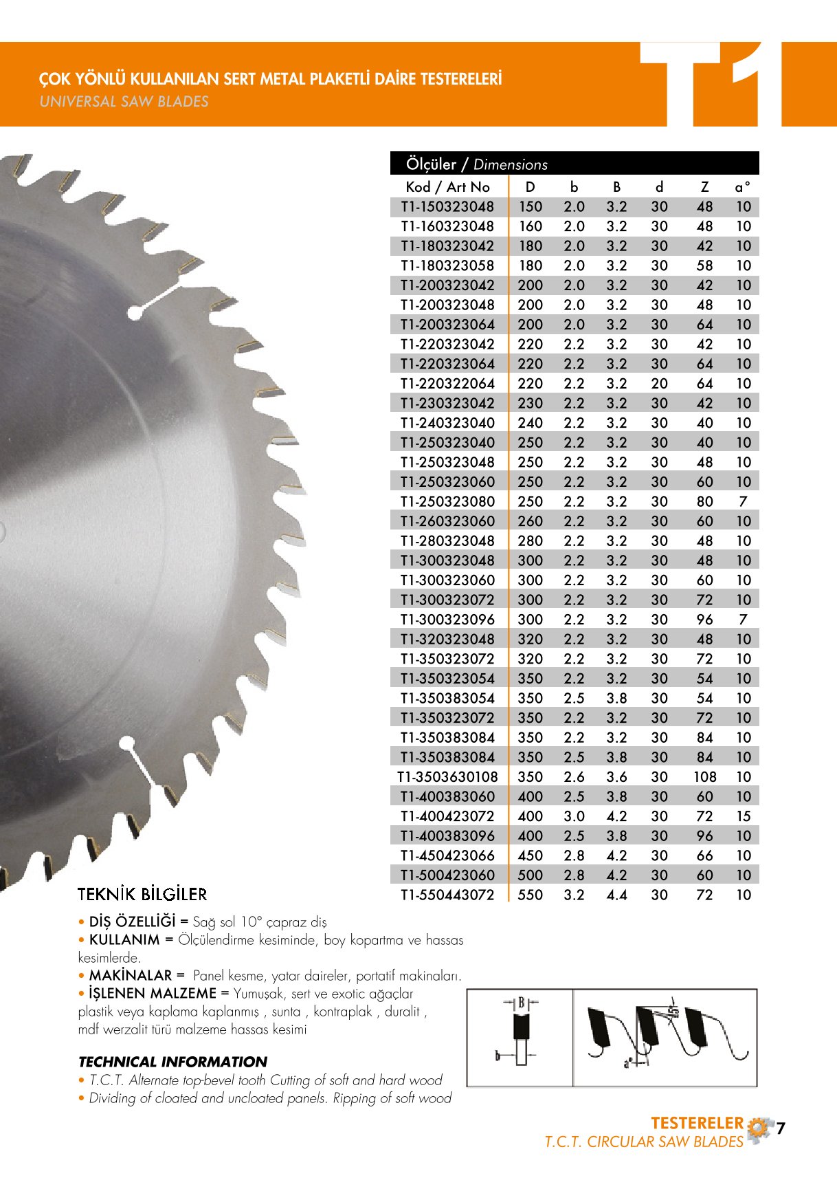 | Açıklama: | Çok yönlü kullanılan sert metal plaketli daire testerelerinin çapı 150-550 mm ve göbek çapı 20-30 mm arasında değişik diş sayılarında firmamızda üretilmektedir. |